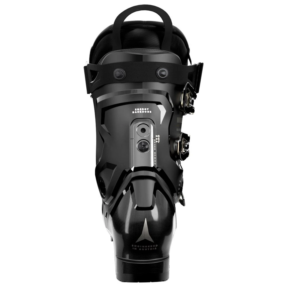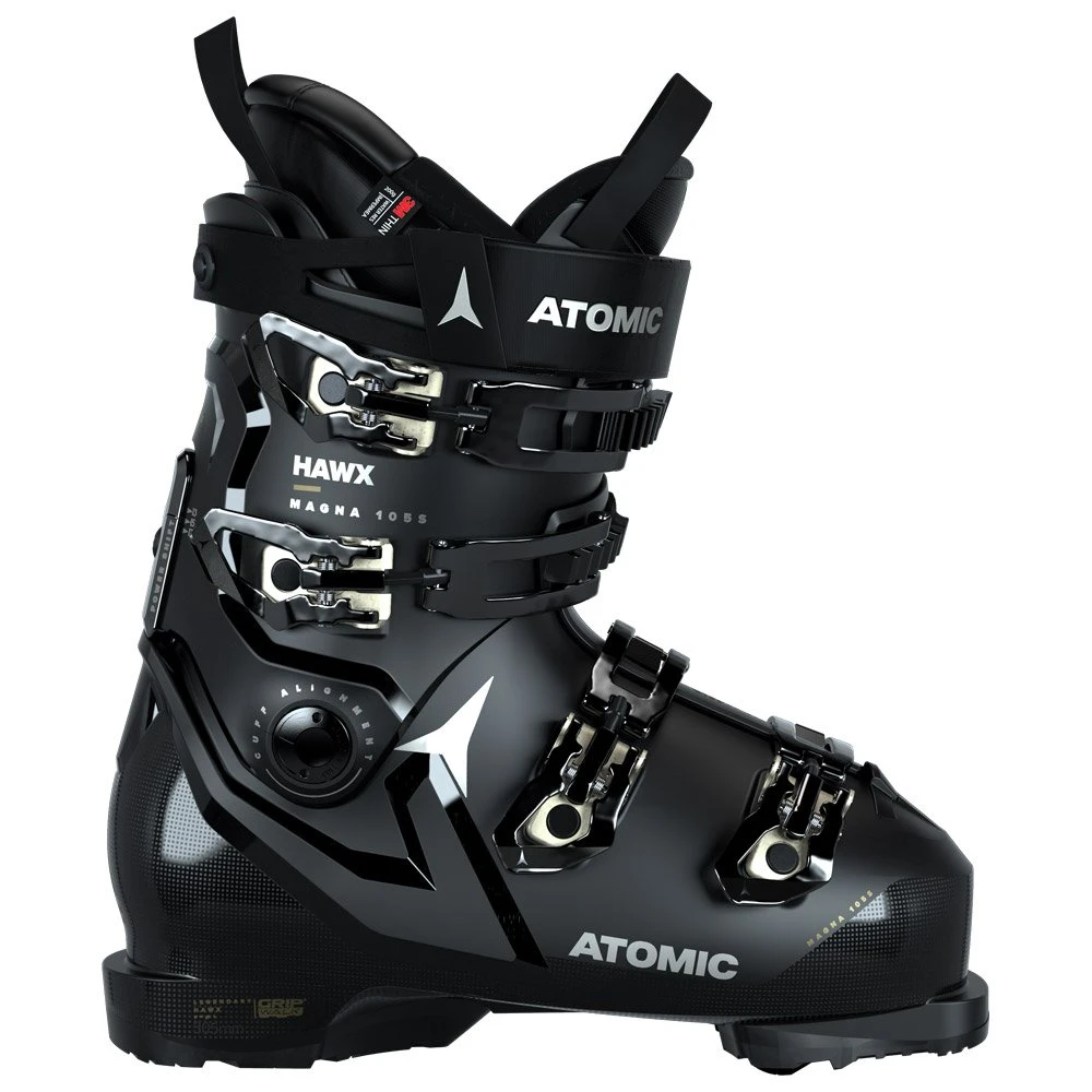 La Hawx Magna 105 W de la marque Atomic dispose d’un flex rigide, ce qui en fait une chaussure puissante, avec un volume totalement adapté aux grands gabarits. Dédiée à une pratique sportive, elle révèle son véritable potentiel sur les pistes ou en all mountain. Si elle est certes exigeante à piloter, elle est malgré tout confortable, ne craignant pas de flirter avec les bords de piste. Sa rigidité permet une conduite précise et dynamique. Le chausson 3D Gold dont elle est équipée enveloppe parfaitement la cheville, le talon et les orteils, tout en étant isolant. La coque Prolite a la réputation d’être légère tout en étant résistante. Les 4 crochets de serrage sont accompagnés d’un strap velcro pour que l’ajustement de l’ensemble soit le plus précis possible.