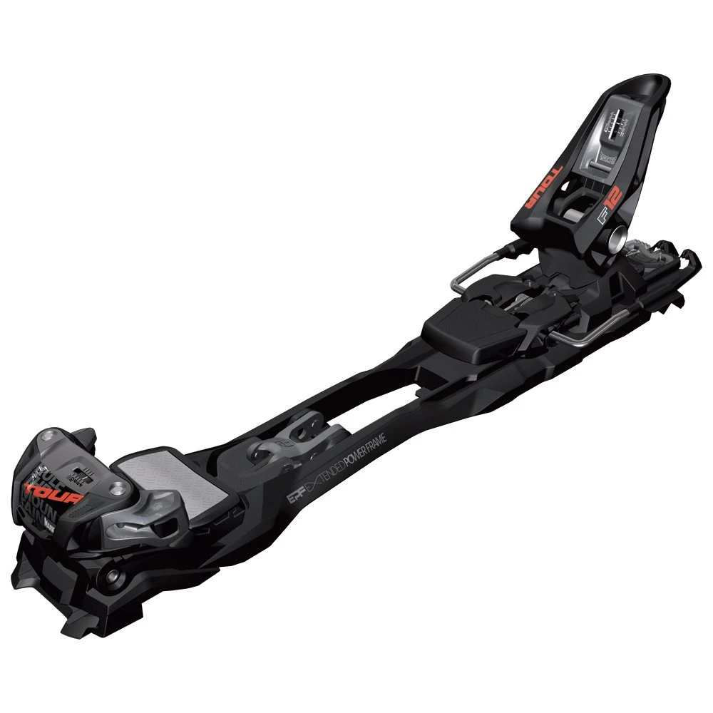 La Tour F12 EPF vient aussi compléter la gamme Freerando : butée et talonnière d’une Tour F12 et embase EPF : empattement des vis et embase plus large. C’est l’élargissement attendu de la collection de randonnée. Toutes les caractéristiques confirmées de la Tour F12 sont combinées à la résistance du cadre EPF. Car les skis de randonnée aussi sont de plus en plus large, ils auront maintenant une fixation adaptée à leur largeur. Poids de la paire (avec freins et vis) : 2204 gr