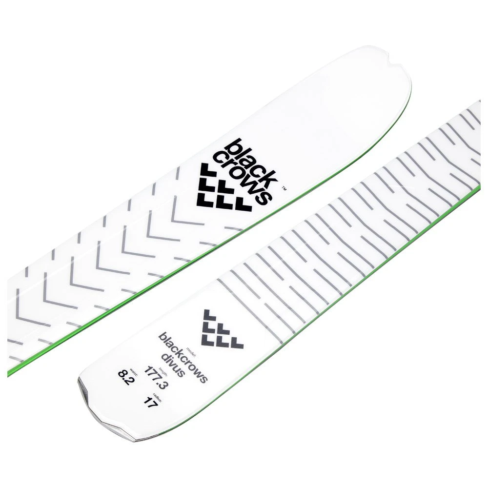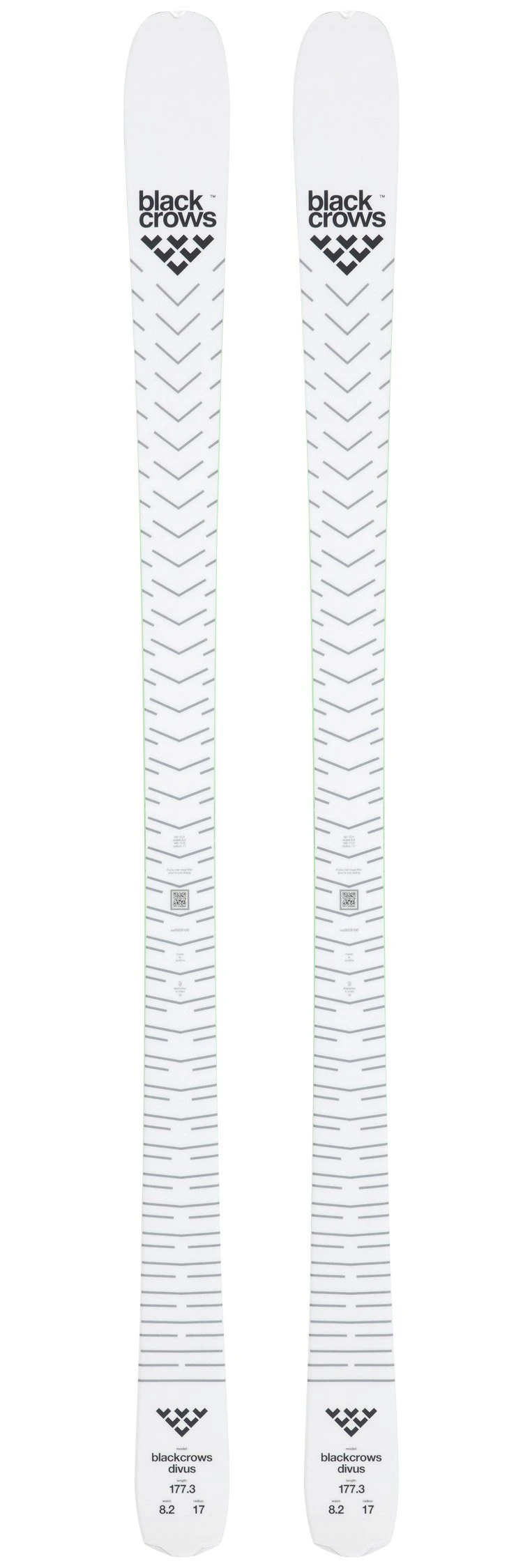 Le Black Crows Divus propose un programme similaire Ă celui du Vertis, câest Ă dire un programme all-mountain Ă dominante piste, mais sâarme dâune construction plus puissante et rigide. Il est donc plutĂŽt destinĂ© Ă des skieurs confirmĂ©s Ă experts, car il faut de bonnes cuisses et de la technique pour profiter pleinement du rebond et de la rigiditĂ© en torsion offerts par la construction peuplier/fibres renforcĂ© dâune double plaque de titanal. En revanche, pour le skieur Ă la hauteur, le Divus permettra dâenchaĂźner des descentes avec un maximum de dynamisme, en enchainant les virages carvĂ©s puissants sur piste et cela quel que soit l’Ă©tat de cette derniĂšre. GrĂące Ă son rocker avant et son patin de 82 mm, le Divus fait preuve de polyvalence et passe aussi bien sur une neige carrelĂ©e quâune neige transformĂ©e, sur une piste fraĂźchement damĂ©e ou sur une neige fondue du printemps.