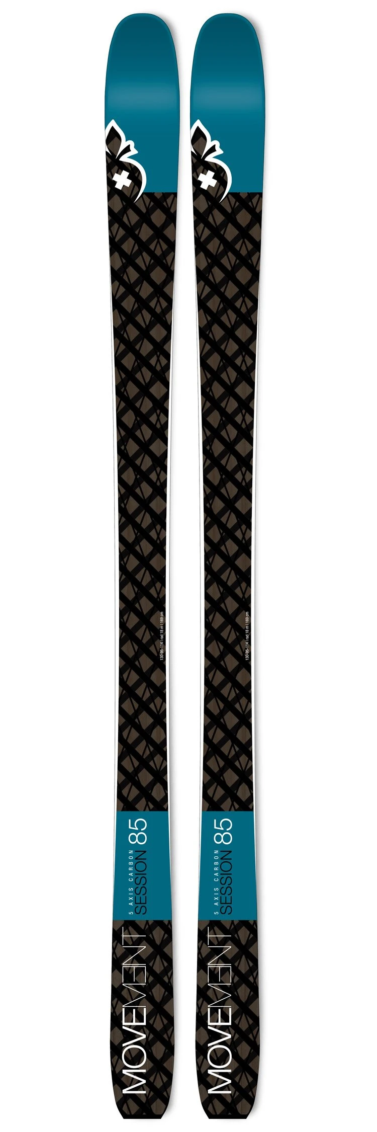 Le Movement Session 85 offre un excellent rapport poids/performance, affichant environ 1 260 g par ski en taille 169 cm, tout en offrant un trÚs bon comportement à la descente dans des conditions variées, y compris sur les neiges difficiles grùce à la technologie Carbon 5 Axis.