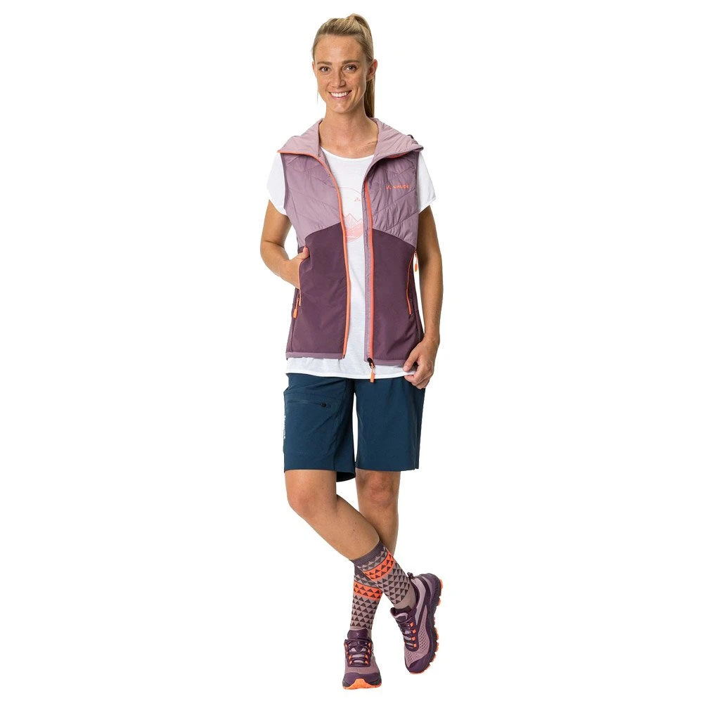 La veste sans manche pour femme Vaude Brenva est un modèle hybride adapté à la randonnée ou à l’alpinisme léger, combinant un tissu extérieur en polyester avec traitement déperlant durable, et une doublure Primaloft. Légère et respirante, elle garantit en prime une isolation efficace contre le froid mais aussi l’humidité si vous rencontrez de petites averses sur votre parcours. De plus, sa construction stretch ne contraint aucun mouvement et rend cette veste grandement confortable. Elle dispose en outre de 2 poches latérales zippées et une capuche fixe. Thermorégulatrice, isolante, compacte, confortable et bien évidemment conçue dans une volonté de neutralité carbone, cette veste est le résultat de tout le savoir-faire de la marque allemande.